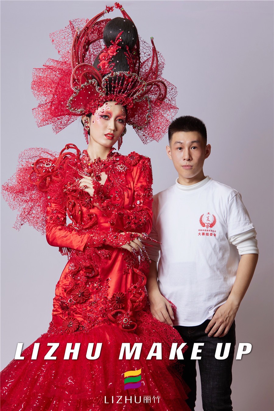 南寧創(chuàng)意造型培訓(xùn)學(xué)校創(chuàng)意彩妝作品---戰(zhàn)姬:這款整體造型以“中國(guó)紅”為主色,修身的魚(yú)尾裙擺設(shè)計(jì)配以水鉆、刺繡和精致的頭飾,妝面以紅色為主,運(yùn)用簡(jiǎn)單線條描繪以及大面積暈染的手法處理,妝面與服裝、頭飾相呼應(yīng),視覺(jué)沖擊十足。