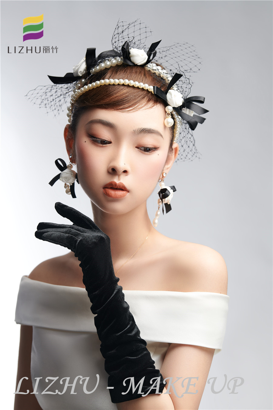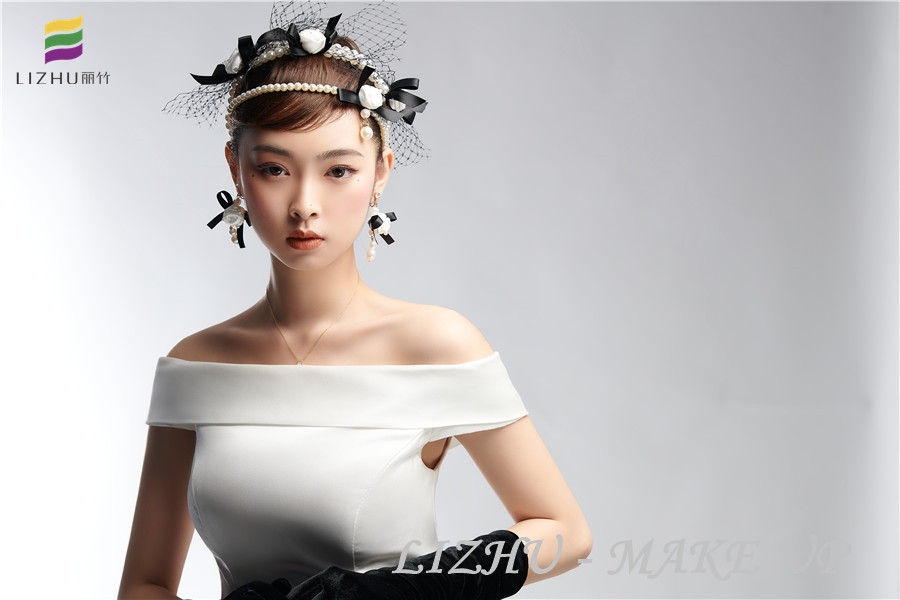 南寧彩妝美妝培訓(xùn)學(xué)校(麗竹彩妝學(xué)校)、南寧美妝培訓(xùn)機(jī)構(gòu)---簡約優(yōu)雅名媛造型:自然干凈的妝面打造輕薄裸妝感,簡約盤發(fā)佩戴網(wǎng)紗珍珠花朵頭飾,潔白無暇花朵耳飾清新亮眼,搭配白色綢緞面料半肩禮服,優(yōu)雅之中又不失少女的甜美。看了這些作品,想知道南寧有實(shí)力的化妝培訓(xùn)班,歡迎到麗竹彩妝學(xué)校了解課程。