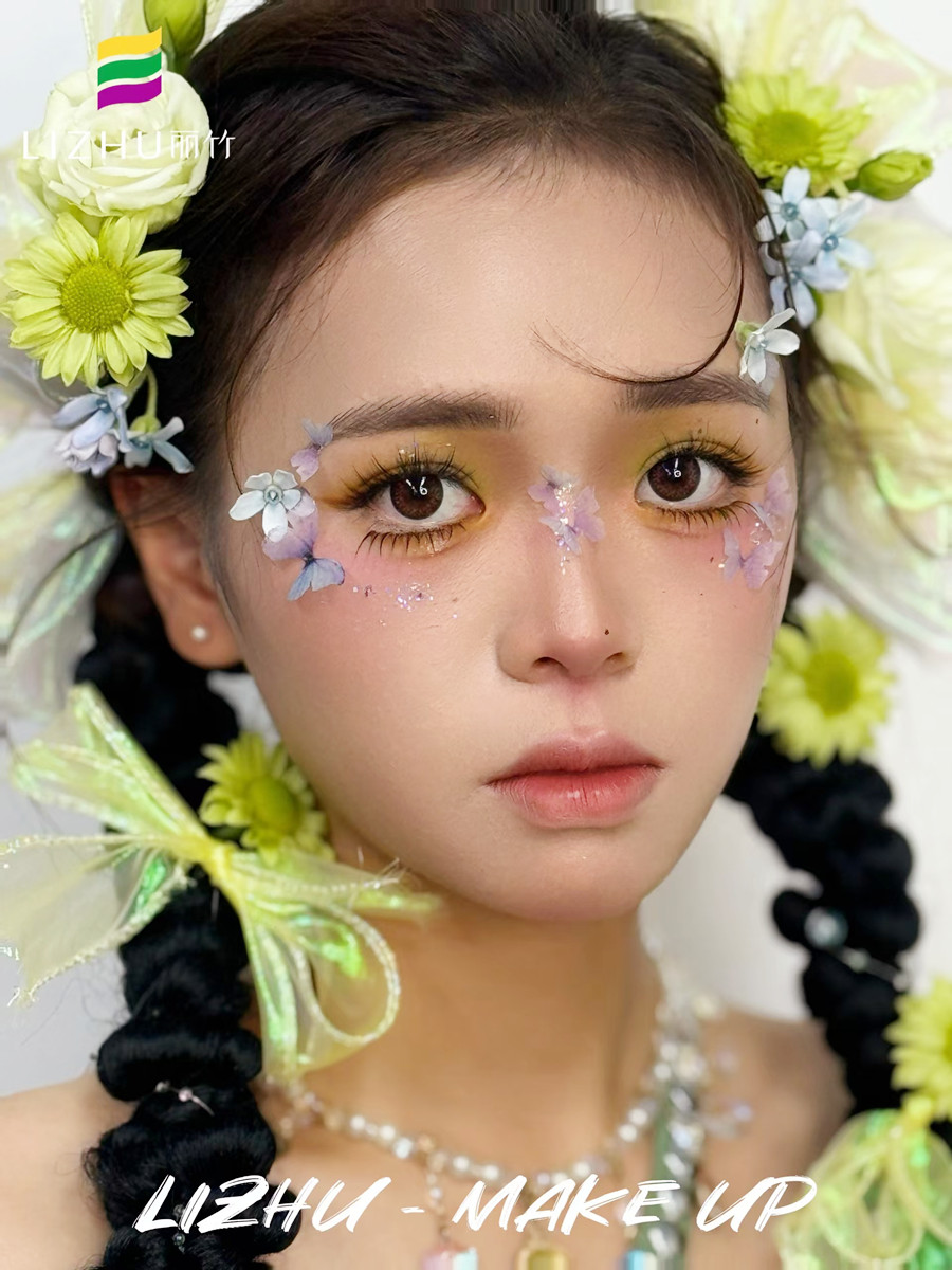 綠色眼影與蝴蝶裝飾的相互襯托